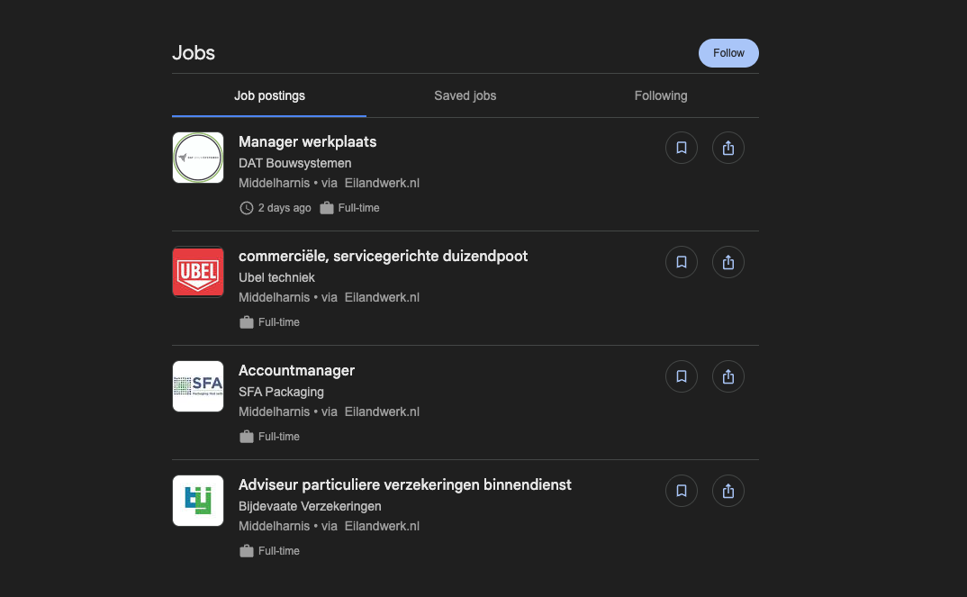 In tegenstelling tot standaard listings toont jouw premium vacature prominent je bedrijfslogo. Dit verhoogt de herkenbaarheid en professionaliteit van je vacature, waardoor kandidaten sneller vertrouwen krijgen en eerder geneigd zijn te solliciteren.